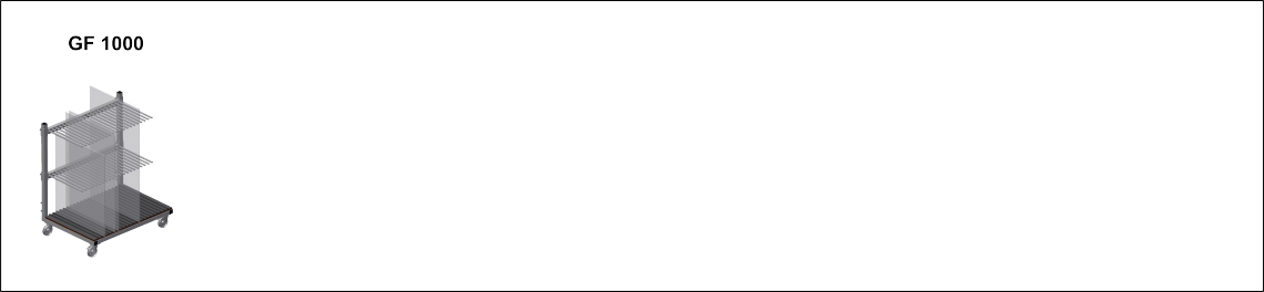 Fachteiler höhenverstellbar. Sämtliche Auflageflächen weisen einen rutschfesten PVC-Überzug auf, hiermit wird eine Beschädigung der Glasscheibe bei der Lagerung vermieden.